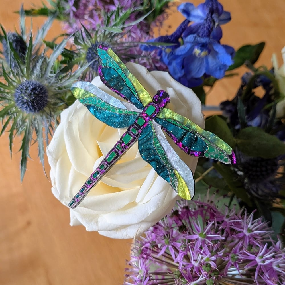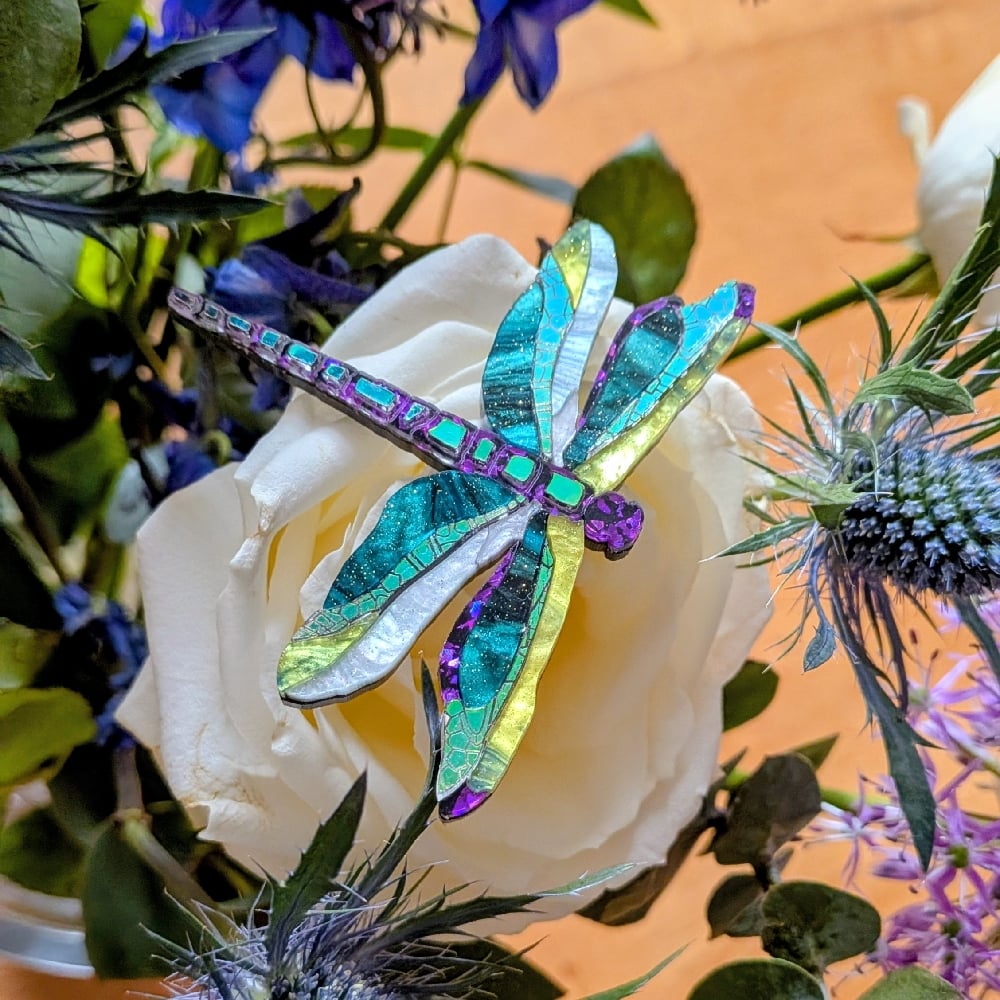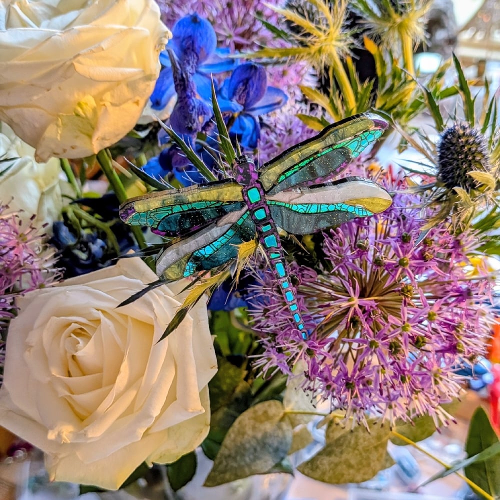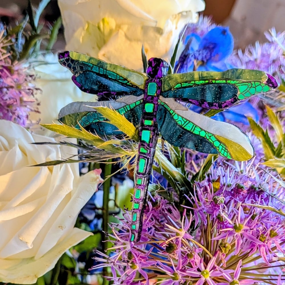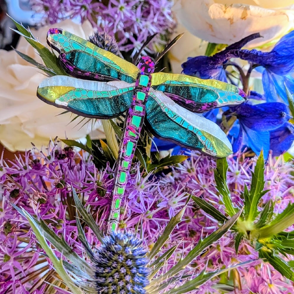 For me, whenever I see dragonflies, they gladden my heart. Much the same way as smelling the essential oil of hyacinth - I was an aromatherapist for over 30 years before becoming a foster carer and they are as wholesome to me on a visual level. (Now you know a snippet more about me!) However, they are flighty and zip away all too soon and I have to say, (because it would be remiss of me not to at least attempt a sales pitch) while wearing my tester brooch of this magnificent wee creature, I catch myself being cheered up as I catch sight of it in a mirror and of others delightful comments on it. So there you have it, a water witch by any other name. xx