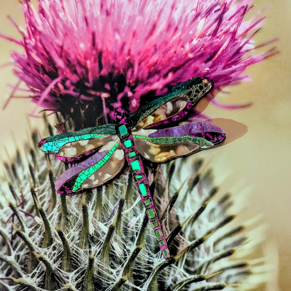 For me, whenever I see dragonflies, they gladden my heart. Much the same way as smelling the essential oil of hyacinth - I was an aromatherapist for over 30 years before becoming a foster carer and they are as wholesome to me on a visual level. (Now you know a snippet more about me!) However, they are flighty and zip away all too soon and I have to say, (because it would be remiss of me not to at least attempt a sales pitch) while wearing my tester brooch of this magnificent wee creature, I catch myself being cheered up as I catch sight of it in a mirror and of others delightful comments on it. So there you have it, a water witch by any other name. xx