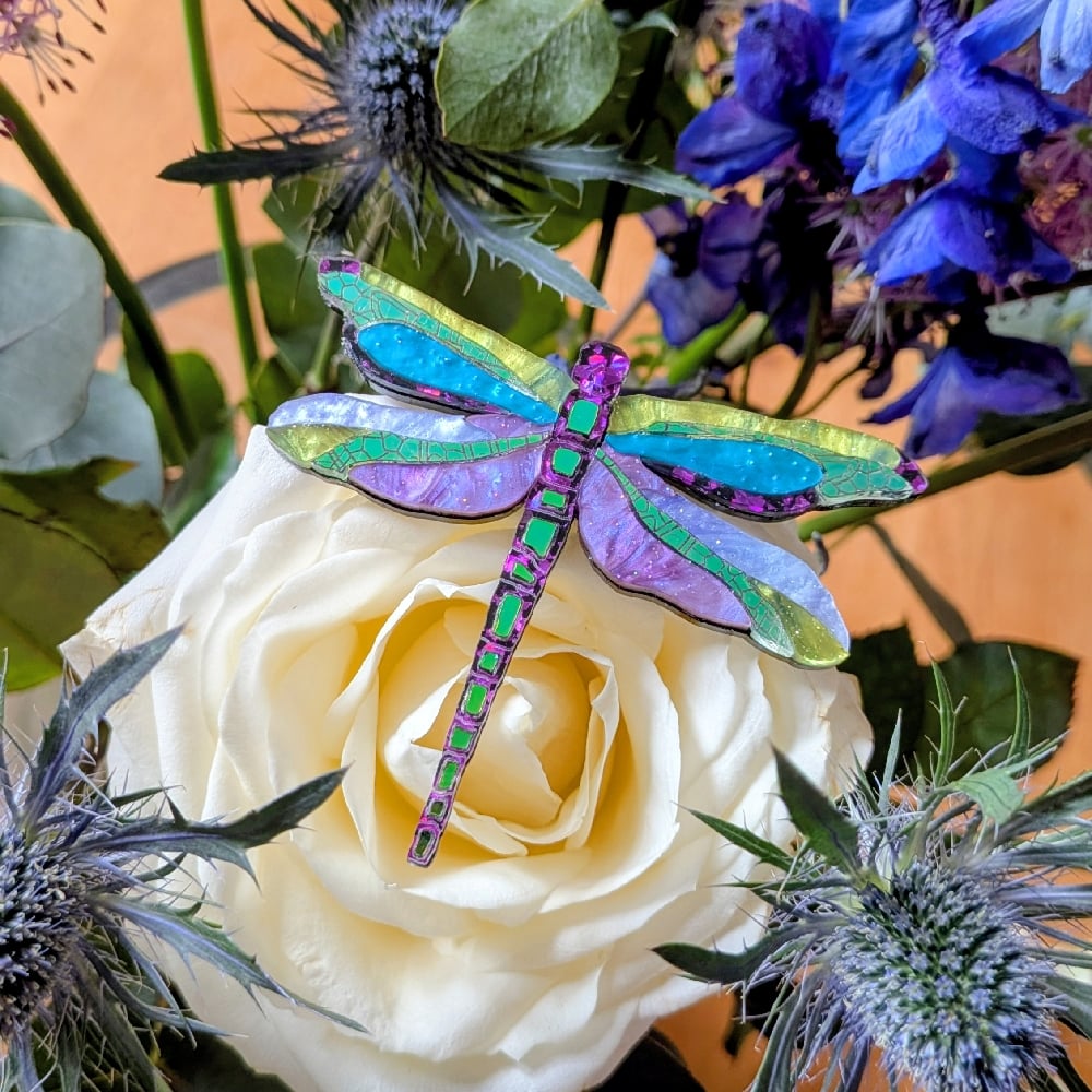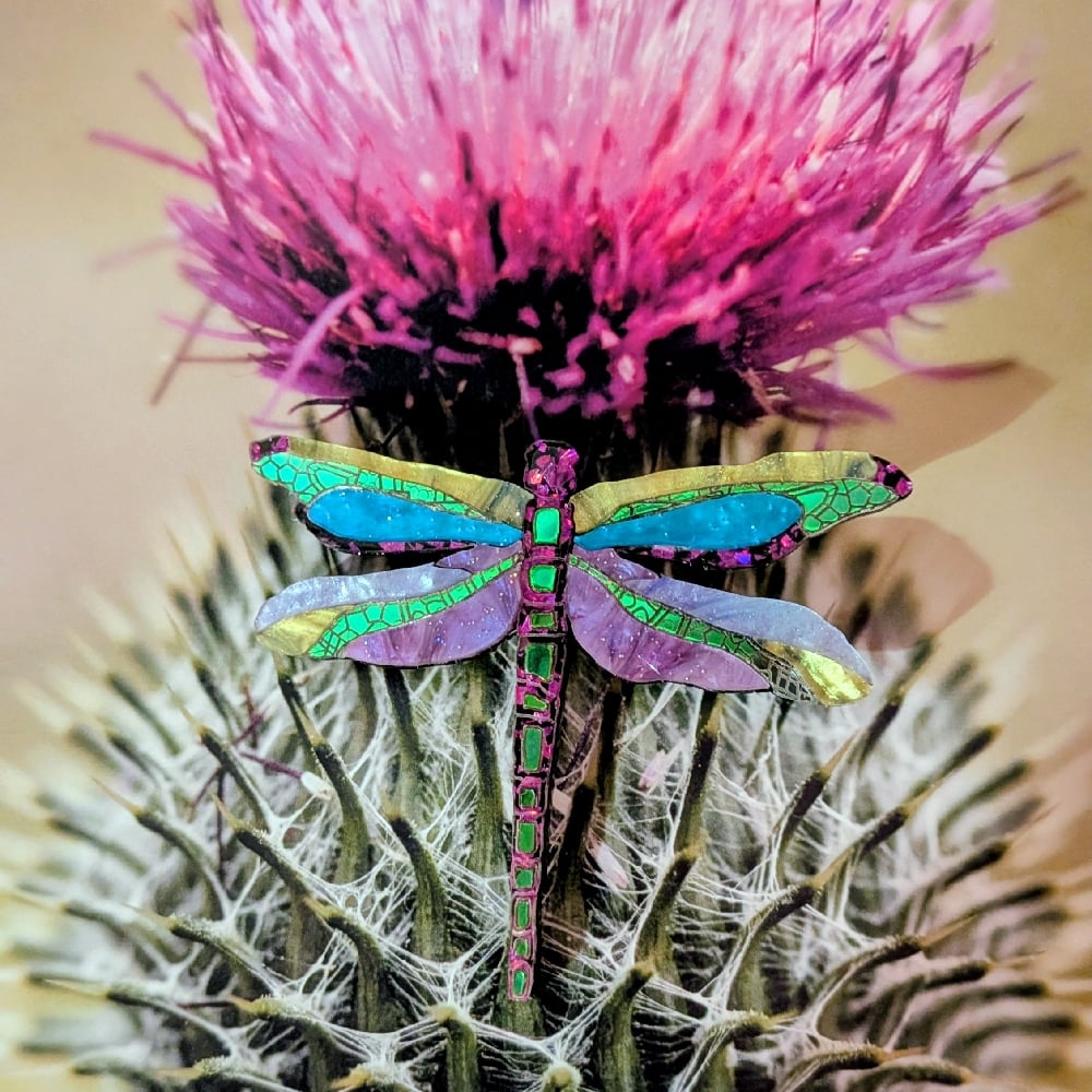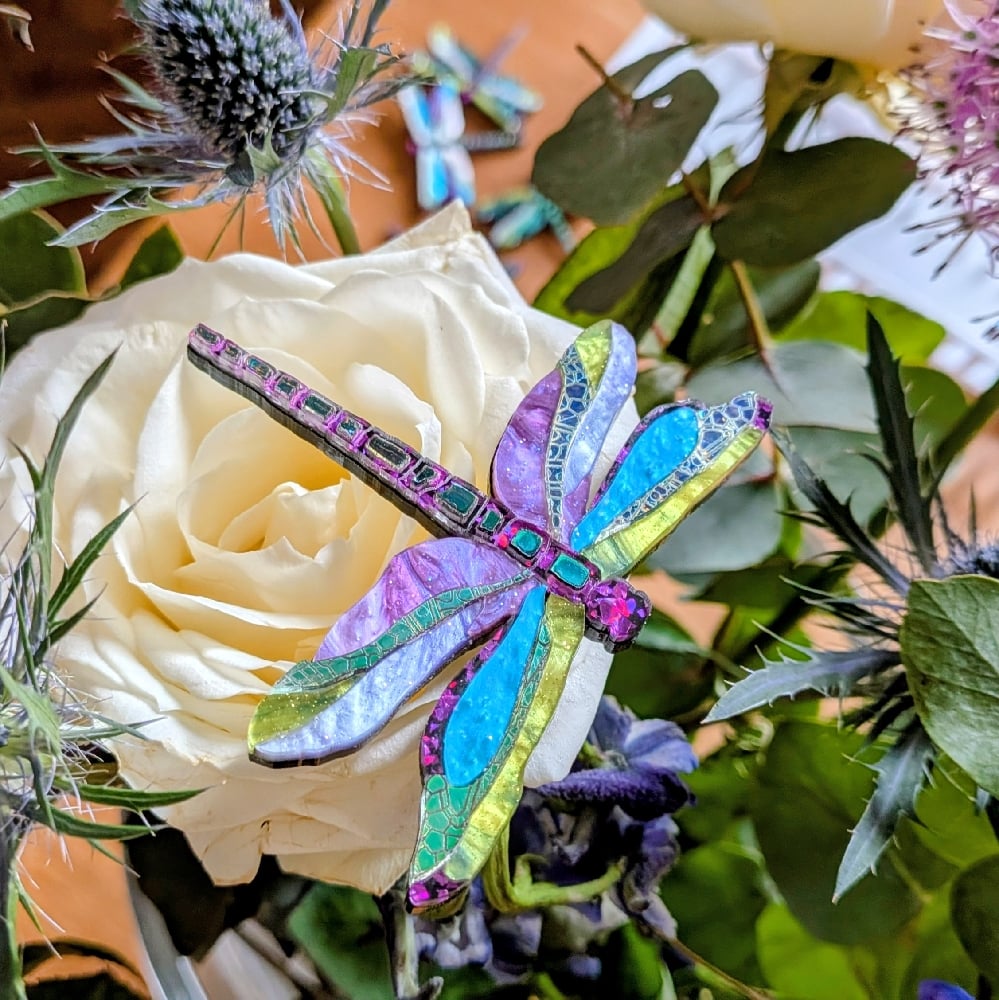 For me, whenever I see dragonflies, they gladden my heart. Much the same way as smelling the essential oil of hyacinth - I was an aromatherapist for over 30 years before becoming a foster carer and they are as wholesome to me on a visual level. (Now you know a snippet more about me!) However, they are flighty and zip away all too soon and I have to say, (because it would be remiss of me not to at least attempt a sales pitch) while wearing my tester brooch of this magnificent wee creature, I catch myself being cheered up as I catch sight of it in a mirror and of others delightful comments on it. So there you have it, a water witch by any other name. xx