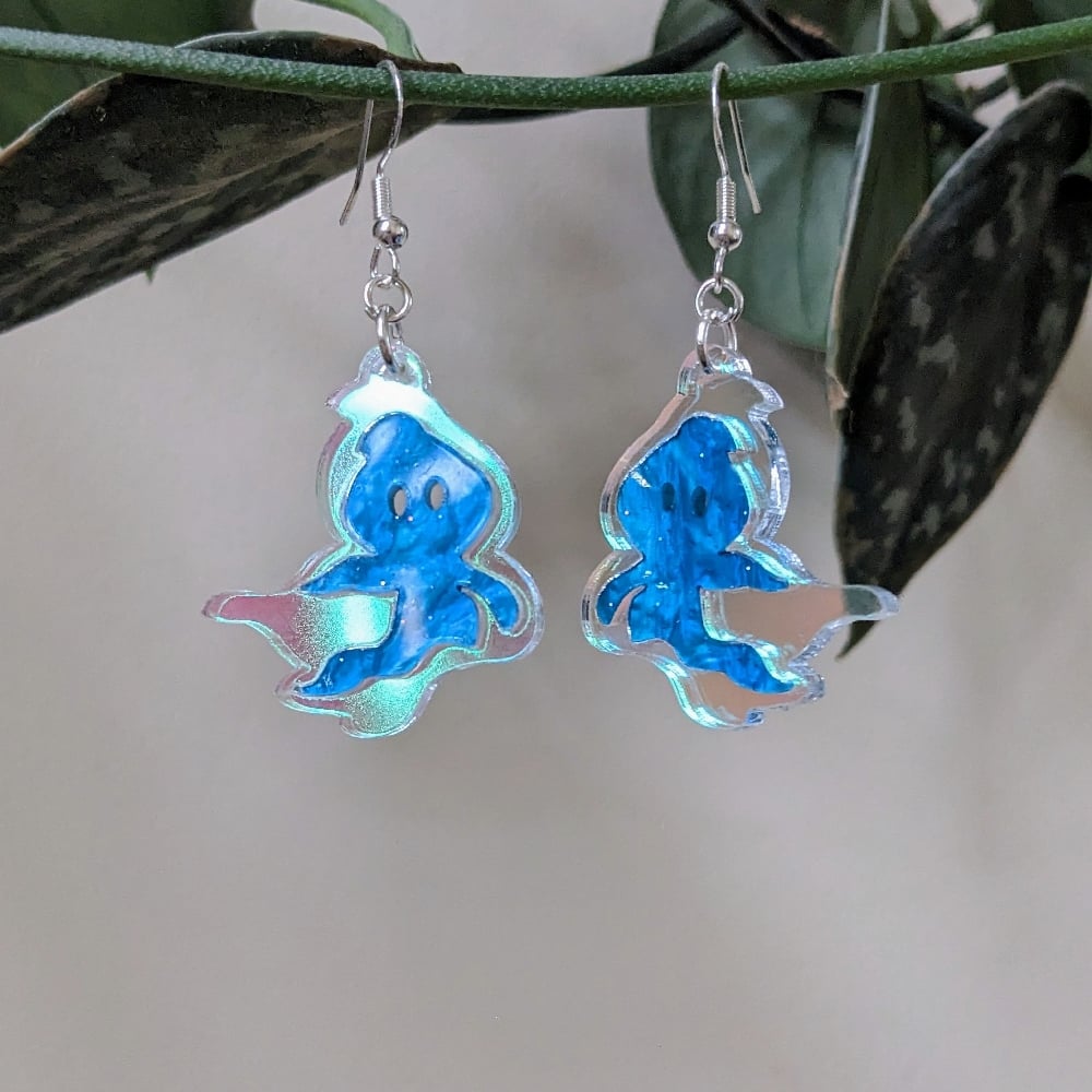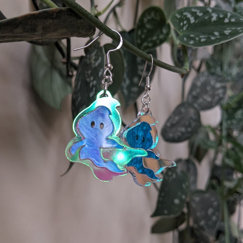 This glowing blue spirits of the forest brooch is simply enchanting. The wisp is of a deep yet light catching ripple shimmer blue, set upon an iridescent acrylic base that gives an ethereal aura of movement, as it catches surrounding colours and lights. There is a matching brooch available.