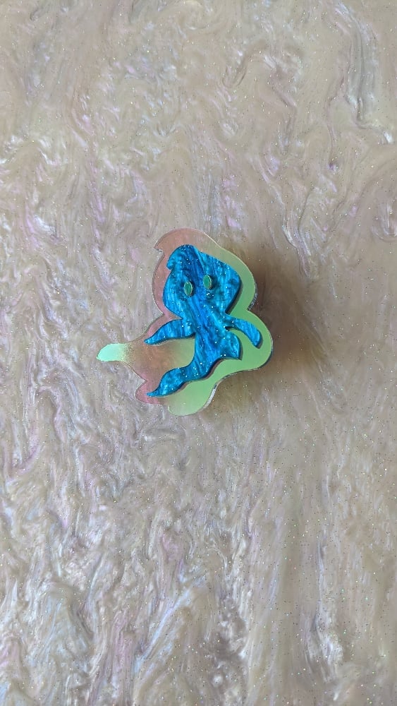 This glowing blue spirits of the forest brooch is simply enchanting. The wisp is of a deep yet light catching ripple shimmer blue, set upon an iridescent acrylic base that gives an ethereal aura of movement, catching surrounding colours and lights. Matching earrings are also available.